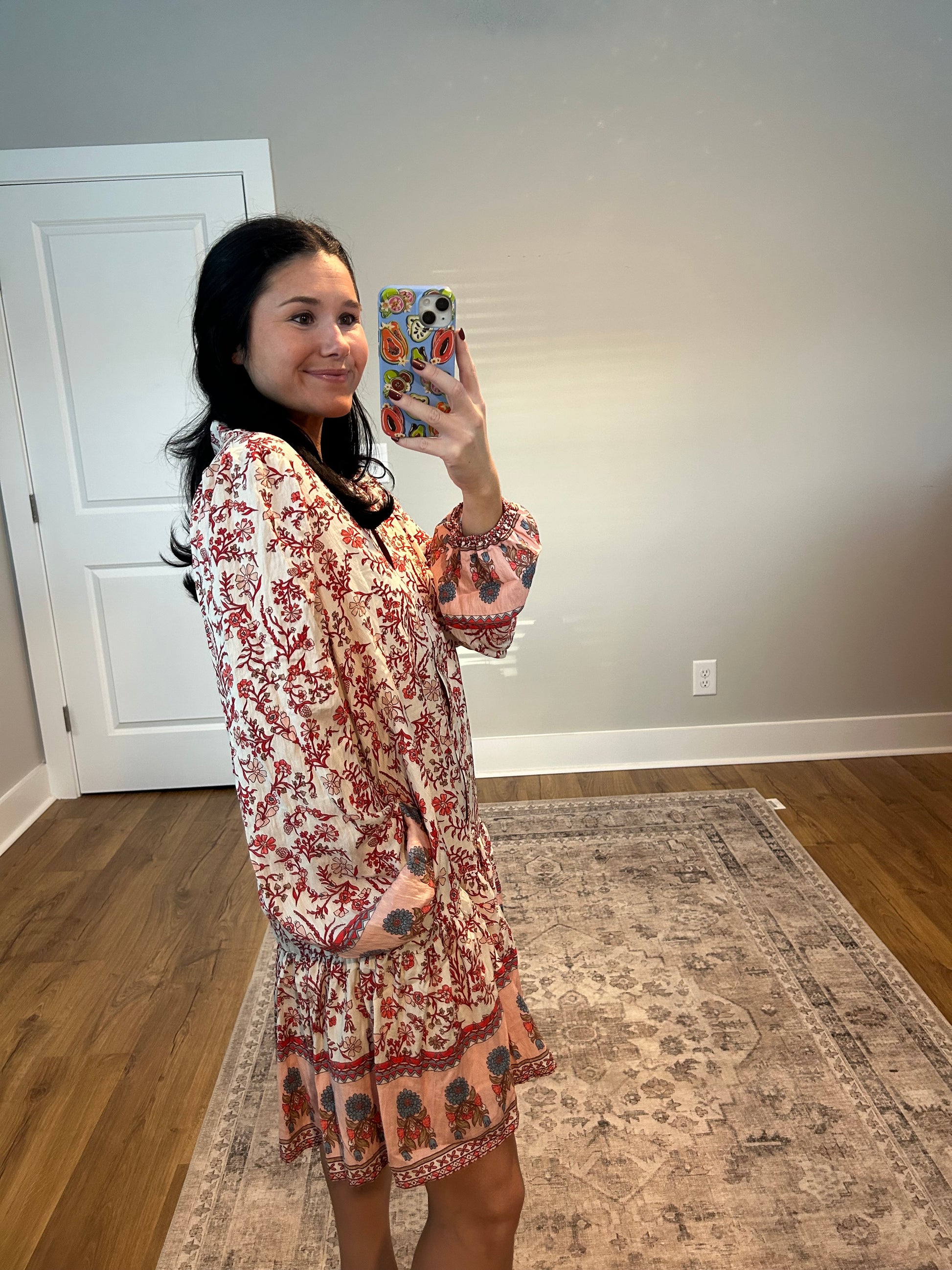 Soft, feminine, and casually chic, the Maren Dress is a seasonal favorite for days that call for flow and elegance. Crafted in a lightweight fabric, it features a delicate floral pattern in red, burgundy, and blush tones that brings a romantic, boutique-ready feel. Button-down detailing and long sleeves make it versatile for layering or wearing solo, while its relaxed silhouette flatters every figure.